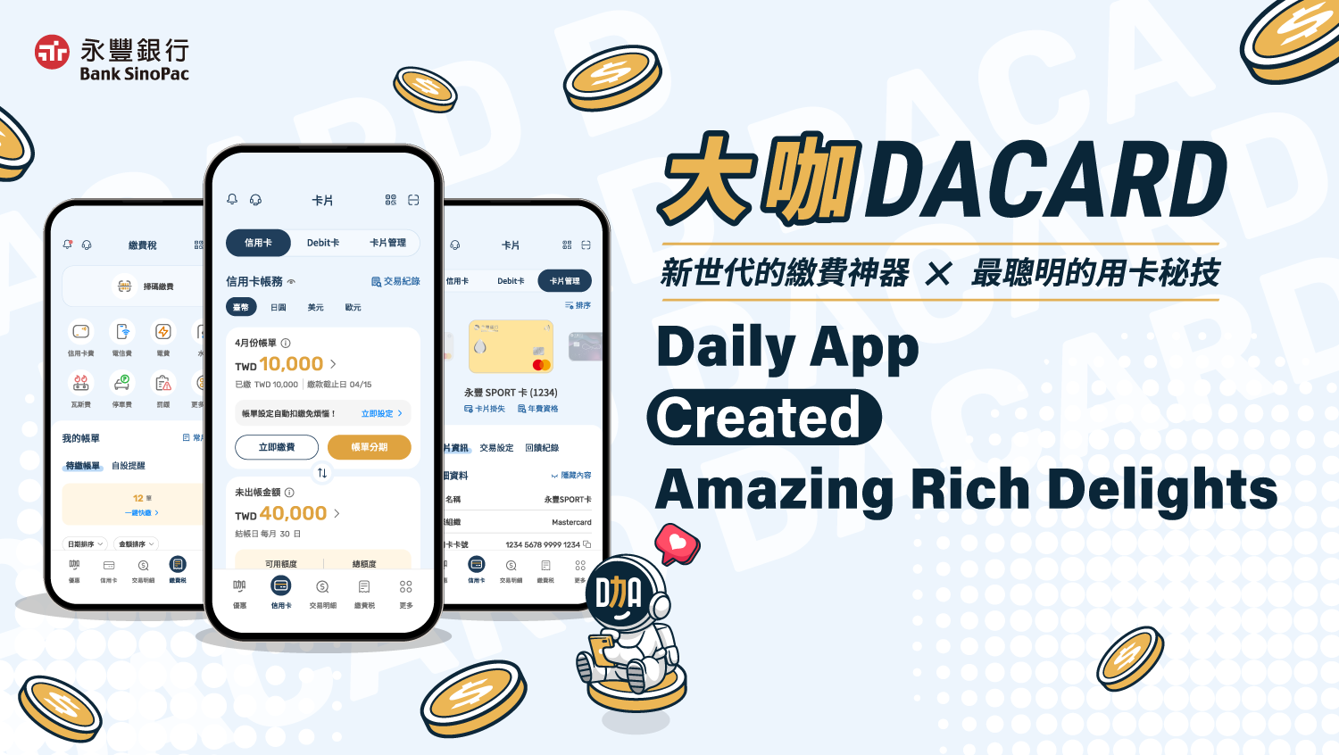 大咖DACARD App讓您隨時管控國內外交易並可掌握各項信用卡消費及繳款資訊