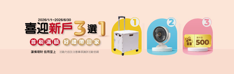喜迎新戶!好禮3選1,首刷好禮帶回家
