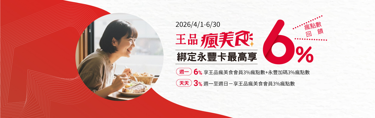 【週一6%】週一-享王品瘋美食會員3%瘋點數+永豐銀行加碼3%瘋點數
