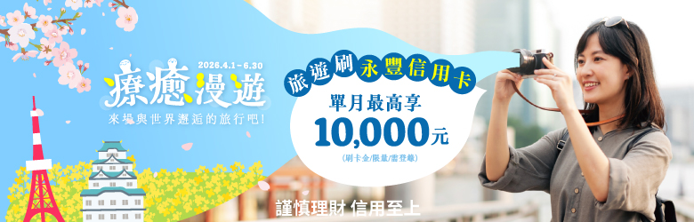 療癒漫遊,來場與世界邂逅的旅行吧!旅遊刷永豐,單月最高享10,000元刷卡金