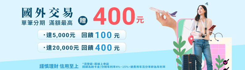- 同一筆分期交易無法同時適用分期新戶滿額活動及國外交易分期加碼活動。