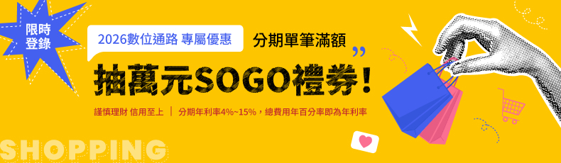 【2026數位通路專屬優惠】分期滿額抽萬元禮券!