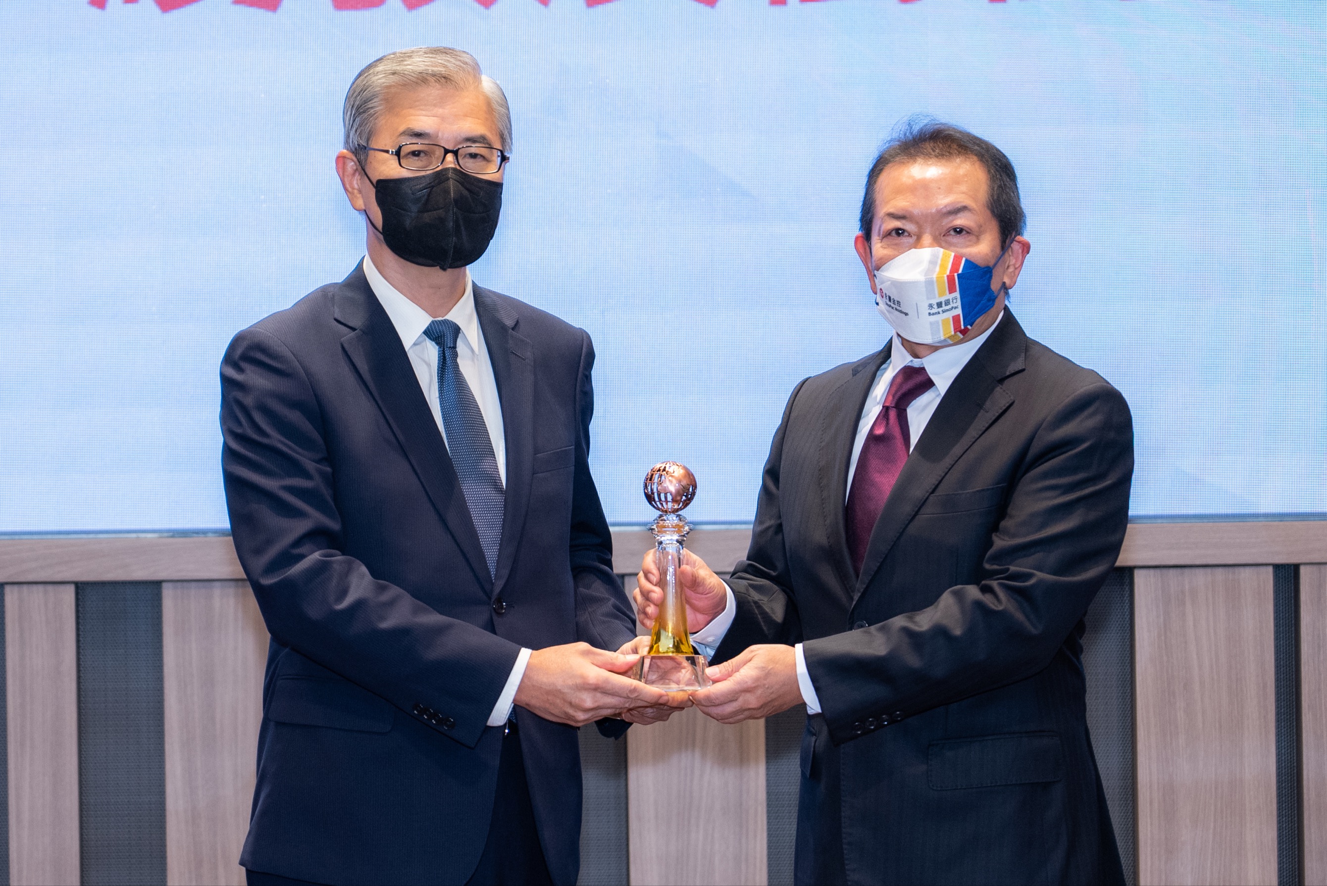 圖說:永豐銀行力挺「信託2.0」,獲頒首期《信託業推動信託2.0計畫評鑑》-「員工福利信託獎」殊榮。圖左為頒獎人金管會主委黃天牧、圖右為領獎人永豐銀行董事長曹為實。