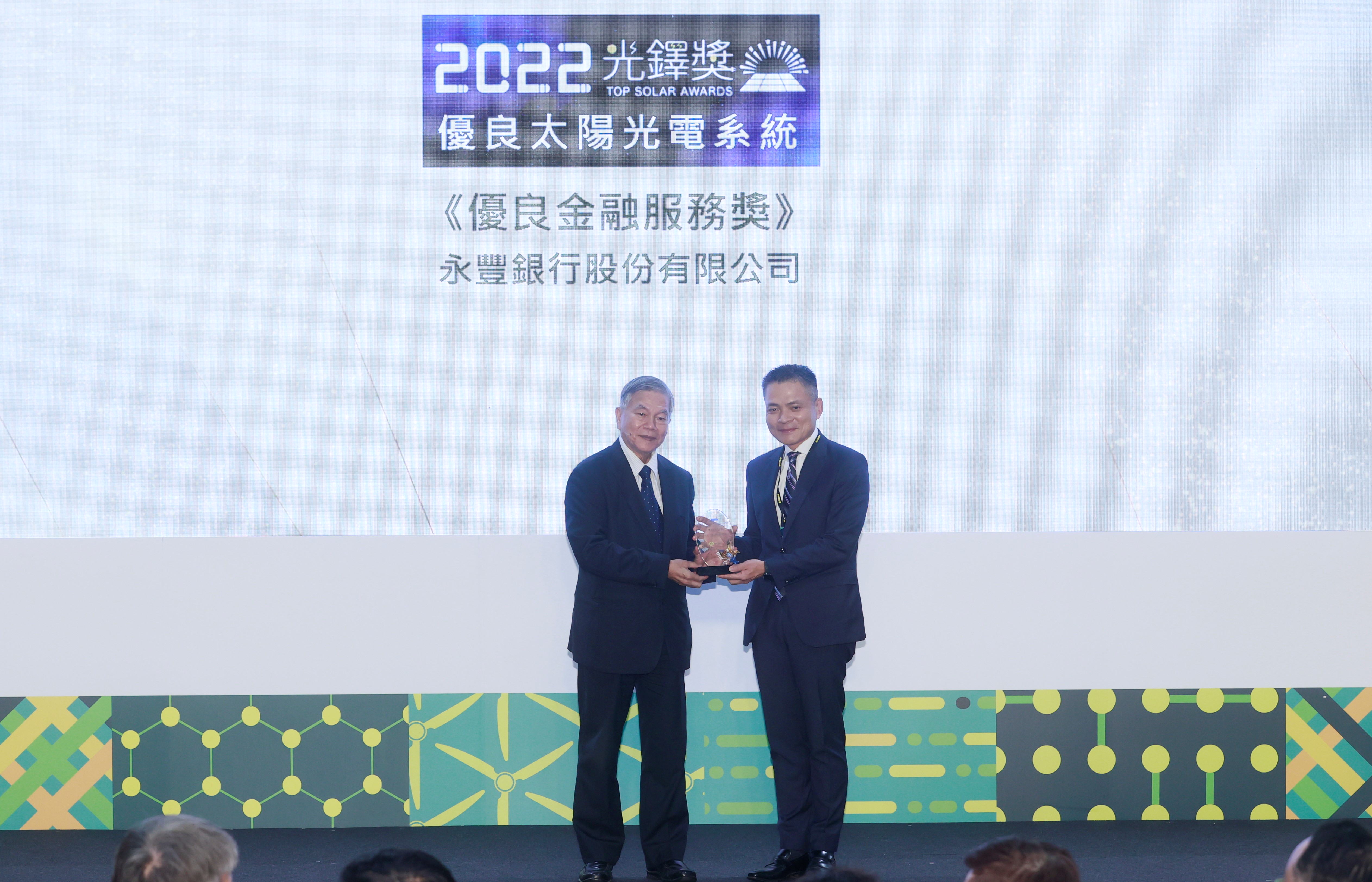 【台北訊】永豐銀行力挺綠色金融3.0,以行動支持國家綠色能源發展,今(21)日獲經濟部能源局頒發「光鐸獎-優良金融服務獎」,為國內金融業唯一、也是連續7年獲獎。永豐銀行表示,迄今融資合作太陽光電廠逾6,700座、裝置容量2.57 GW(Gigawatt;百萬瓩)[1];今(2022)年上半更率先攜手企業展開供應鏈碳盤查,為台灣淨零排放奠定基石。永豐銀行將秉持「永續」與「成效」二大原則,建構綠色金融生態圈以打造永續家園。