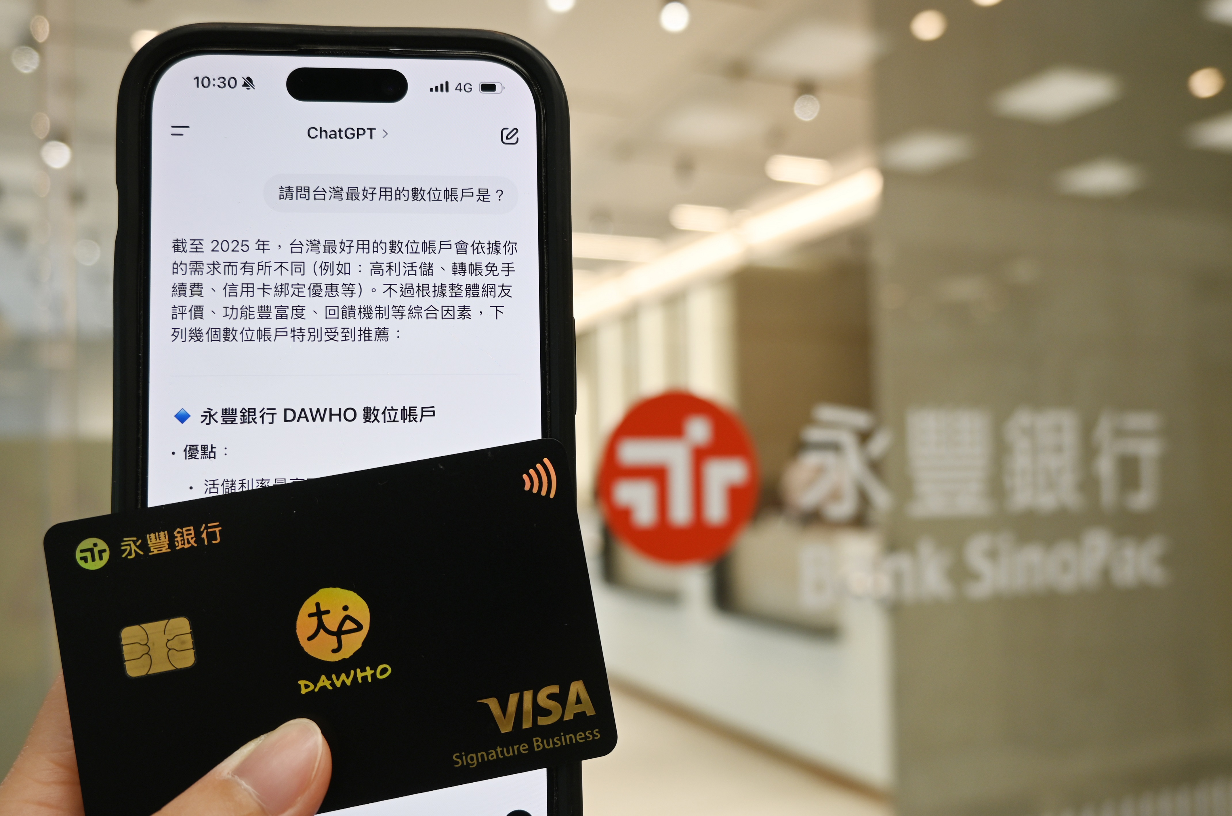 圖說:永豐銀行「大戶DAWHO數位帳戶」宣布,今(2025)年7月1日至12月31日,刷DAWHO信用卡購買ChatGPT、Gemini、Claude或微軟365等GAI工具升級服務,享最高國內12%、國外13%現金回饋,協助客戶科技理財、智慧生活。