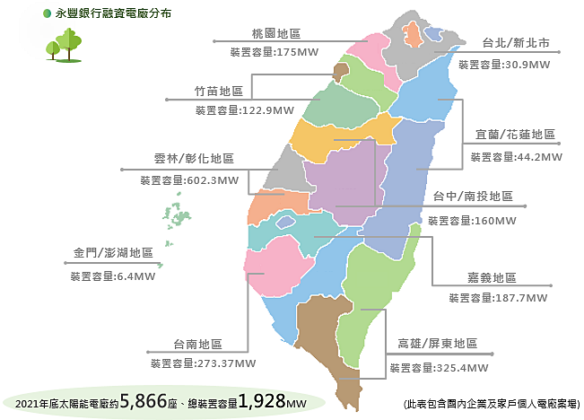 基於對再生能源的重視,以及個人或家庭經濟單位近年陸續投入建置太陽能光電設備市場,永豐銀行提供貸款金額最高九成與貸款年限最長15年之專案,大幅降低個人戶建置綠能設備成本,並提高其投資意願。