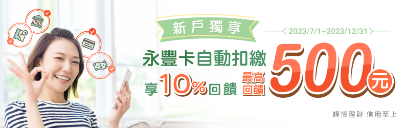 申請永豐帳戶扣繳本人永豐信用卡卡費,登錄享刷卡金回饋!