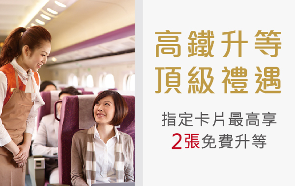 購買台灣高鐵標準車廂對號座車票,享限量空位升等商務車廂優惠。