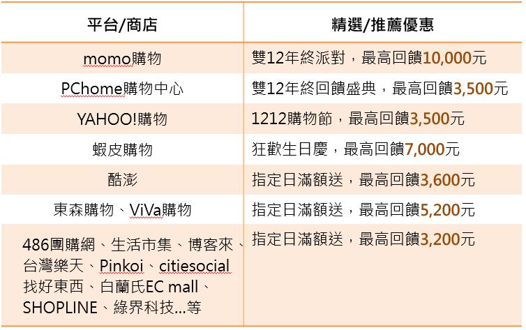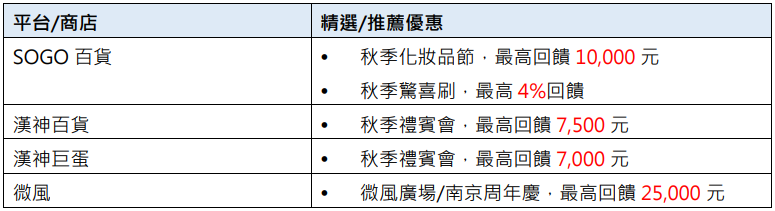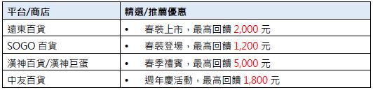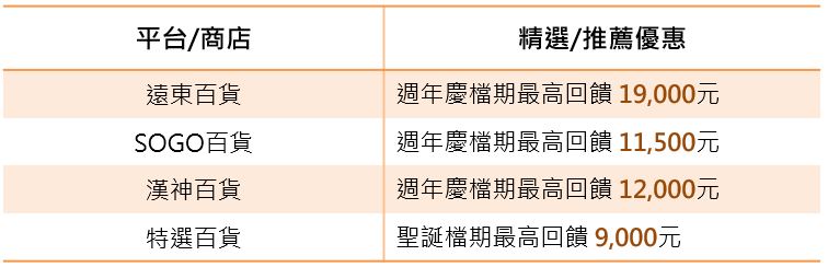 一、百貨購物,最高回饋19,000元