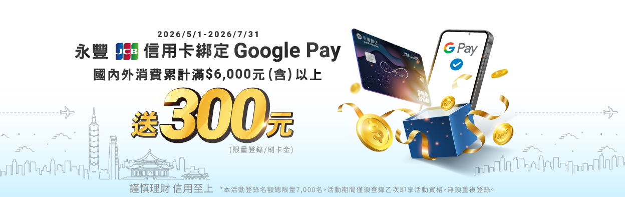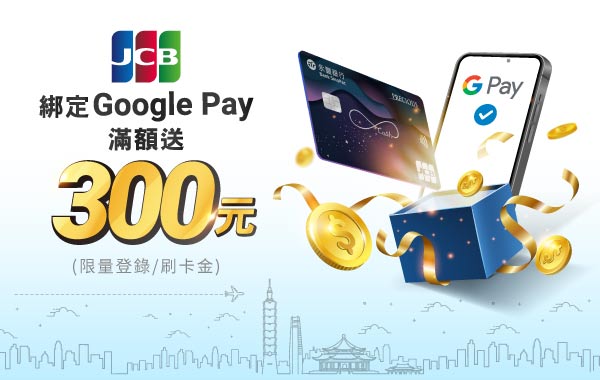 永豐JCB卡綁定Google Pay刷卡滿額享300元刷卡金回饋!
