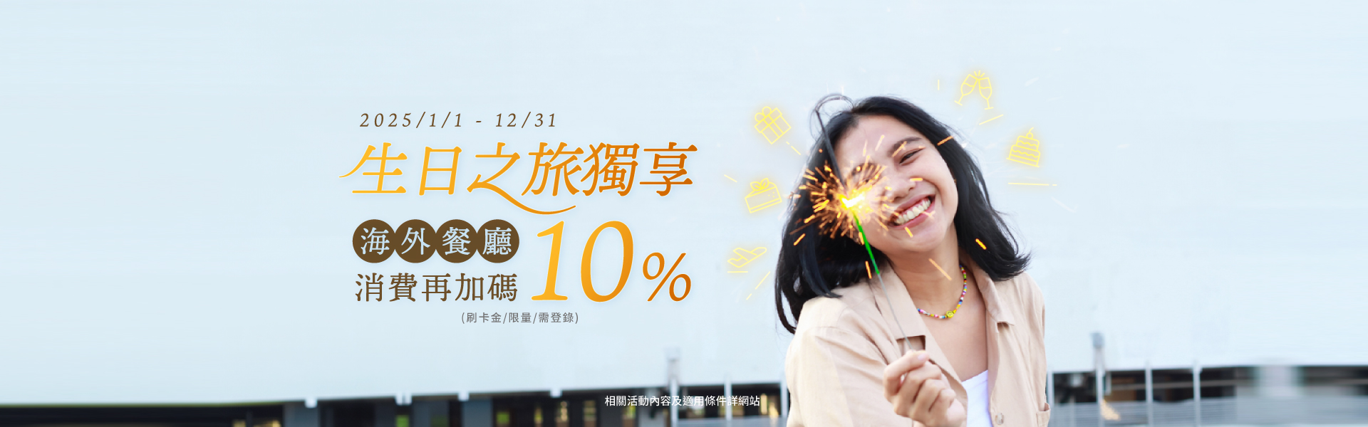 生日之旅獨享!海外餐廳消費再加碼10%