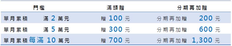 ※本活動每月計算回饋,消費及分期門檻各僅擇優回饋一次,不得重複回饋