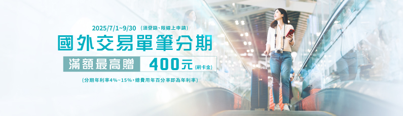 國外交易單筆分期滿額最高贈400元
