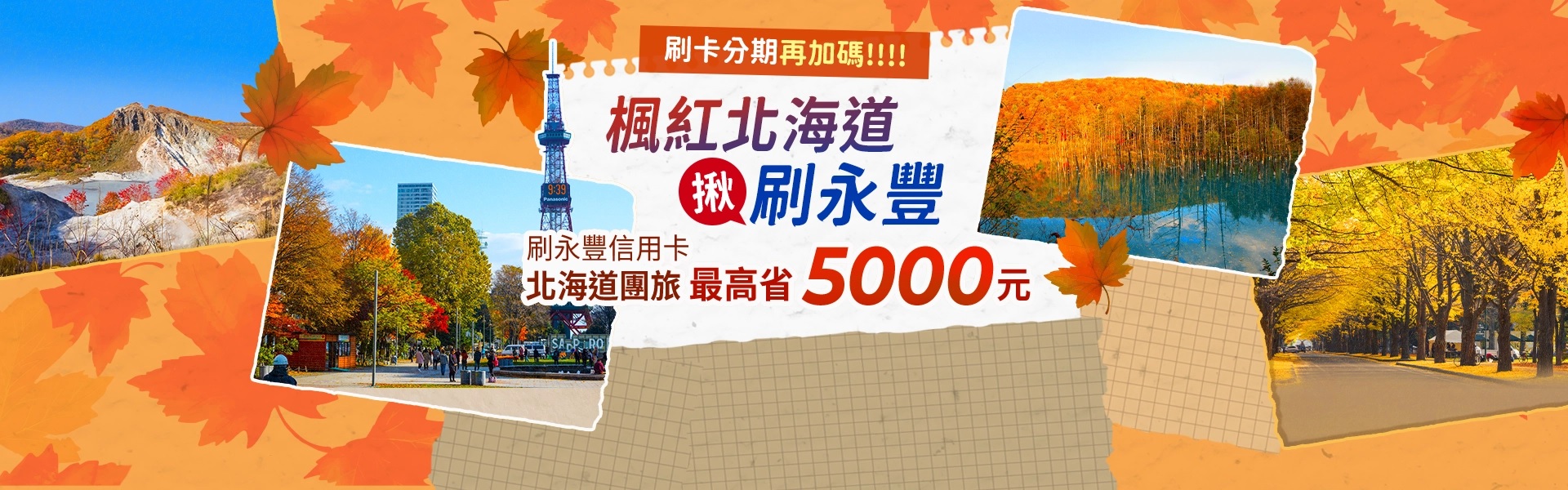 4. 本專案可併用其他優惠,也可同享永豐銀行官網旅遊滿額活動,符合活動資格且完成登錄,可享刷卡金回饋;唯短線行程與指定日本賞楓行程,限擇一活動參加。