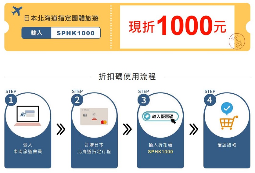 3. 折扣碼不限平日或假日入住,一旦取消訂房,當次折扣優惠將失效。