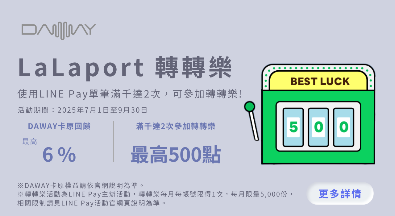 ▶ 活動內容:於活動指定週間,使用LINE Pay綁定DAWAY卡消費,符合條件加碼享LINE POINTS回饋