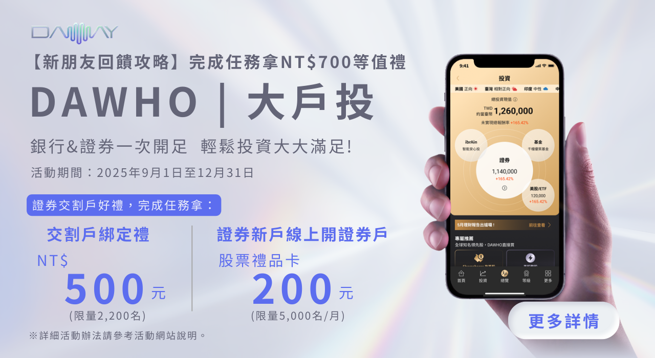 舉例說明:小豐的結帳日是每個月9日,他在2/9結帳的帳單消費回饋,可於3/31前收到回饋並可以在DAWHO app /大咖 app/行動銀行查詢。小豐是2024年新戶,頁面將顯示他的新戶加碼資格截止日。