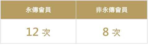 - 每月4次貴賓室下午茶禮遇