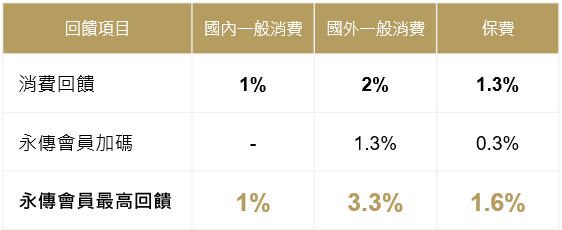 活動內容:永傳會員於活動期間享加碼禮遇,刷「永傳世界卡」消費尊享現金回饋如下