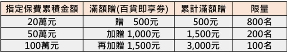 - 本活動保費限指定壽險公司適用,惟三商美邦限傳統壽險適用。