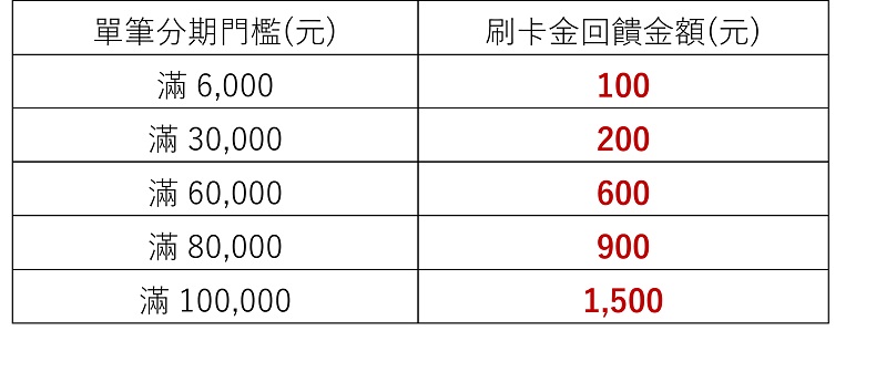 - 刷卡金僅限折抵信用卡消費款,不得轉讓、提領或兌現,也不得指定回饋月份。