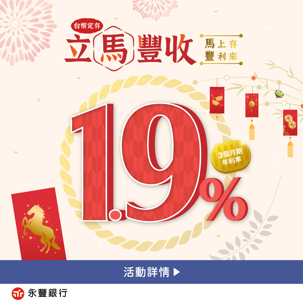 台幣3個月期定存1.9%年利率