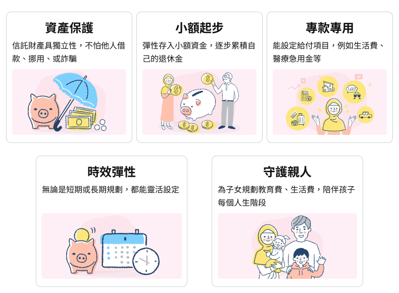 您在台灣努力工作、照顧家人,也能夠規劃自己的未來。「新住民信託」透過小額、定期儲蓄的方式,協助您逐步累積資產,為退休生活或家庭成員,打造完整的保障