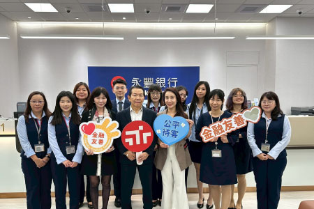為強化永豐銀行金融友善服務,2025年於六都設立金融友善示範分行。11月4日董事長親赴示範分行之一—敦南分行進行訪視,實地了解容膝式 ATM、友善櫃檯及無障礙廁所等設備,並與同仁交流後續精進方向,肯定團隊在落實金融友善上的努力。