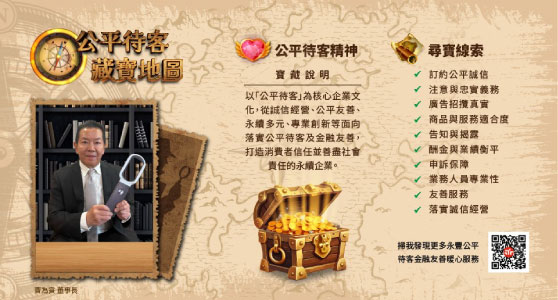 邀請董事及高階主管參與公平待客原則宣導,並以「公平待客小學堂」為主題,將主管透過GAI圖像生成化身為講師,自7月至9月於內部網站登入頁面以跳圖方式宣導落實公平待客。