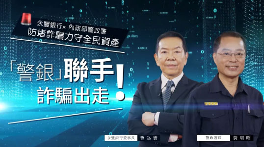 董事長進行反詐倡議,並與警政署/臺北市警局/刑事警察局合作多檔警銀宣導影音,5月22日起上線於官方YouTube頻道。