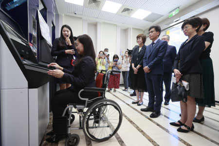 金管會主任委員彭金隆與財政部部長莊翠雲、衛生福利部社會及家庭署組長尤詒君於8月14日共同前往永豐銀行濟南路分行,由金控董事長及銀行總經理親自接待導覽,實地視察永豐銀行在推行無障礙設施及友善服務方面的成果。