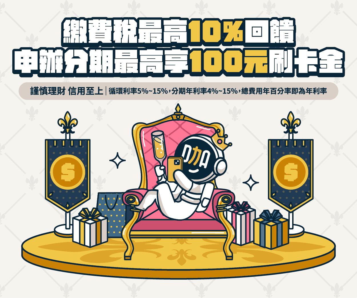 登入大咖APP繳費稅,最高享10%回饋!線上通路申辦分期,最高享100元刷卡金!(需登錄)
