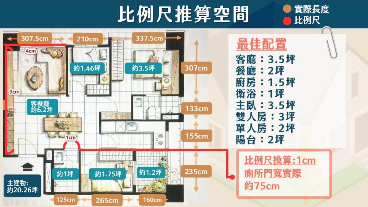 知道最佳坪數之後,讓我們進階教你怎麼看傢配圖抓出空間坪數: