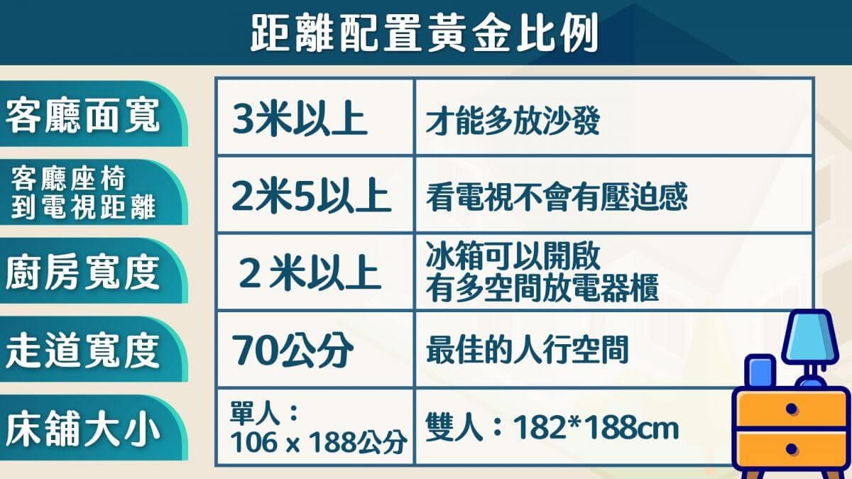 除了坪數配置之外,你知道客廳面寬的距離也是有學問的嗎?到底客廳的深度要多少住起來才舒適呢?接下來讓我們告訴你幾個居家環境的黃金比例: