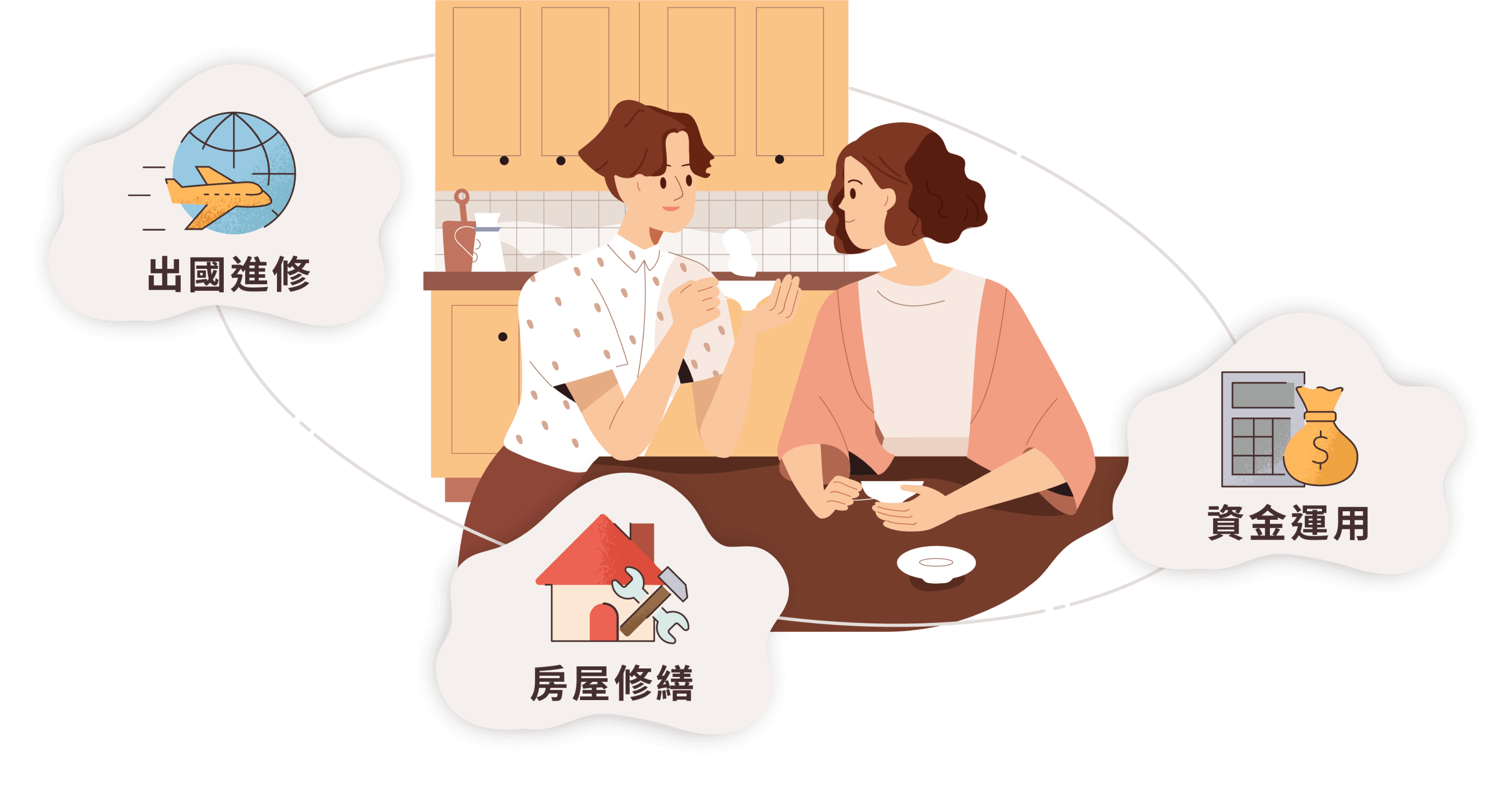 ・可隨時靈活動用的房貸額度,不動用不計息,如有動用則以「日」計息。・適合做為緊急備用金、週轉金等用途之資金。