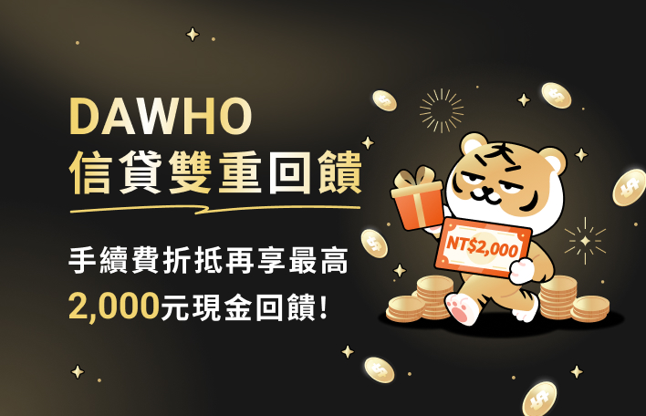 手續費折抵再享最高2,000元現金回饋!