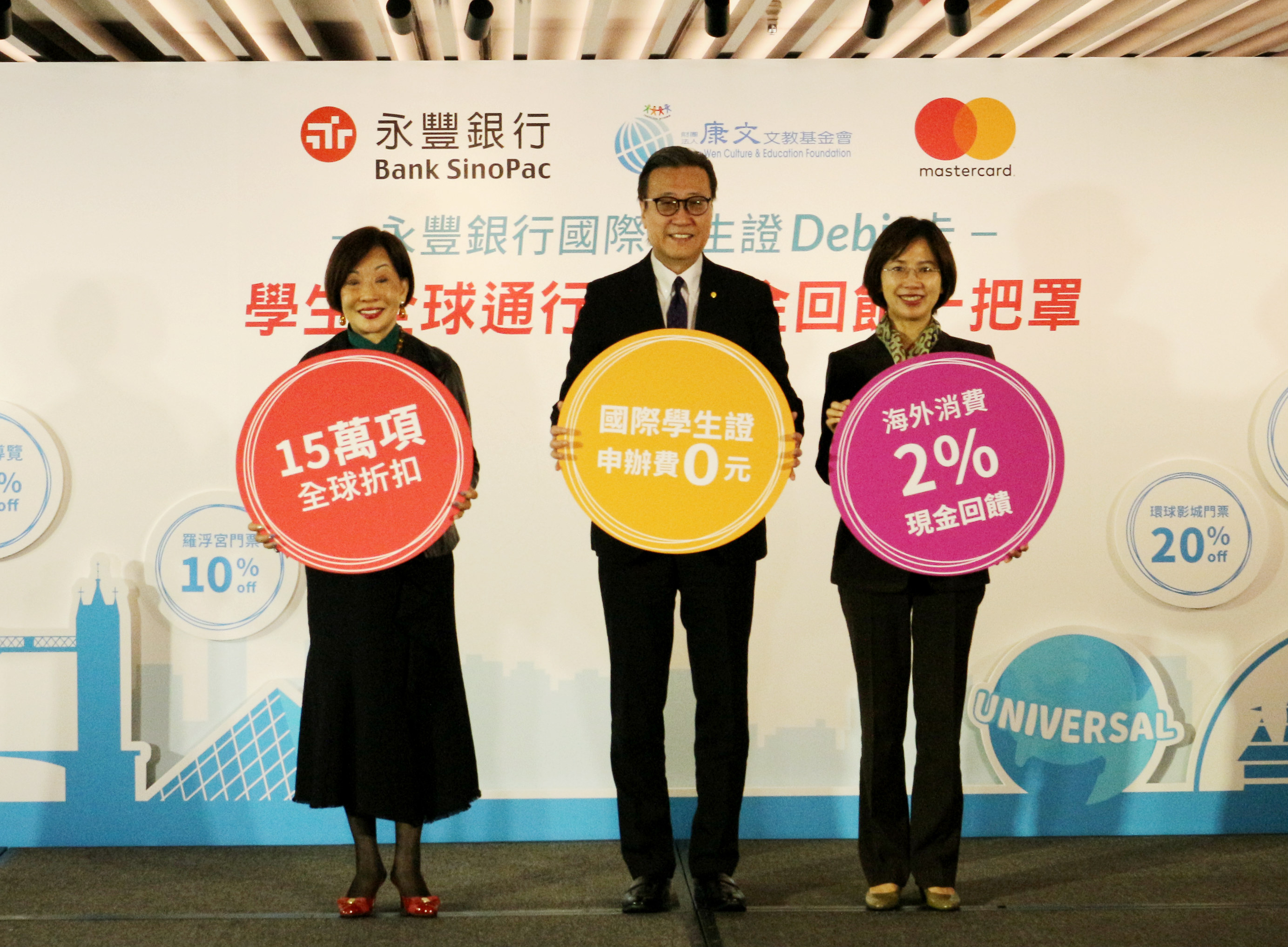 【台北訊】永豐銀行今(19)日宣布攜手財團法人康文文教基金會及萬事達卡合作推出「永豐銀行國際學生證Debit卡」[1],讓台灣學生獨享遍布全球五大洲15萬項優惠,國內外消費也享雙重現金回饋。永豐銀行總經理莊銘福表示,支持年輕人追求夢想,透過學習增進視野並與世界接軌,「永豐銀行國際學生證Debit卡」提供青年學子在海外遊學、旅遊、生活體驗的最佳便利支付卡片,協助青年全方位金融需求。