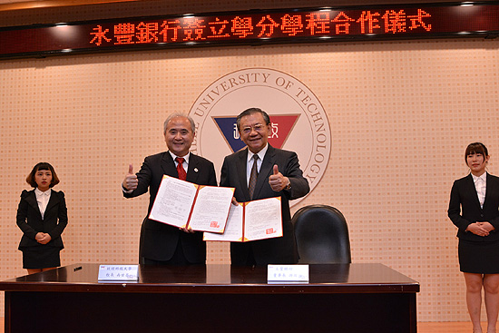就業預先準備。圖左為致理科技大學校長尚世昌、圖右為永豐銀行董事長游國治。