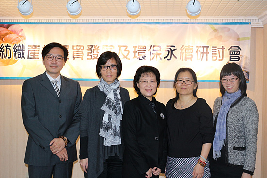 永豐銀行18日與中華民國紡織業拓展會、中華經濟研究院合辦「2017年全球經濟市場展望」研討會。左起永豐銀行整合行銷處副總黃冠叡、紡拓會副秘書長楊曉琴、永豐投顧副總經理林秀貞、中華經濟研究院經濟展望中心主任彭素玲、永豐銀行法人金融行銷部副總余秀冬。