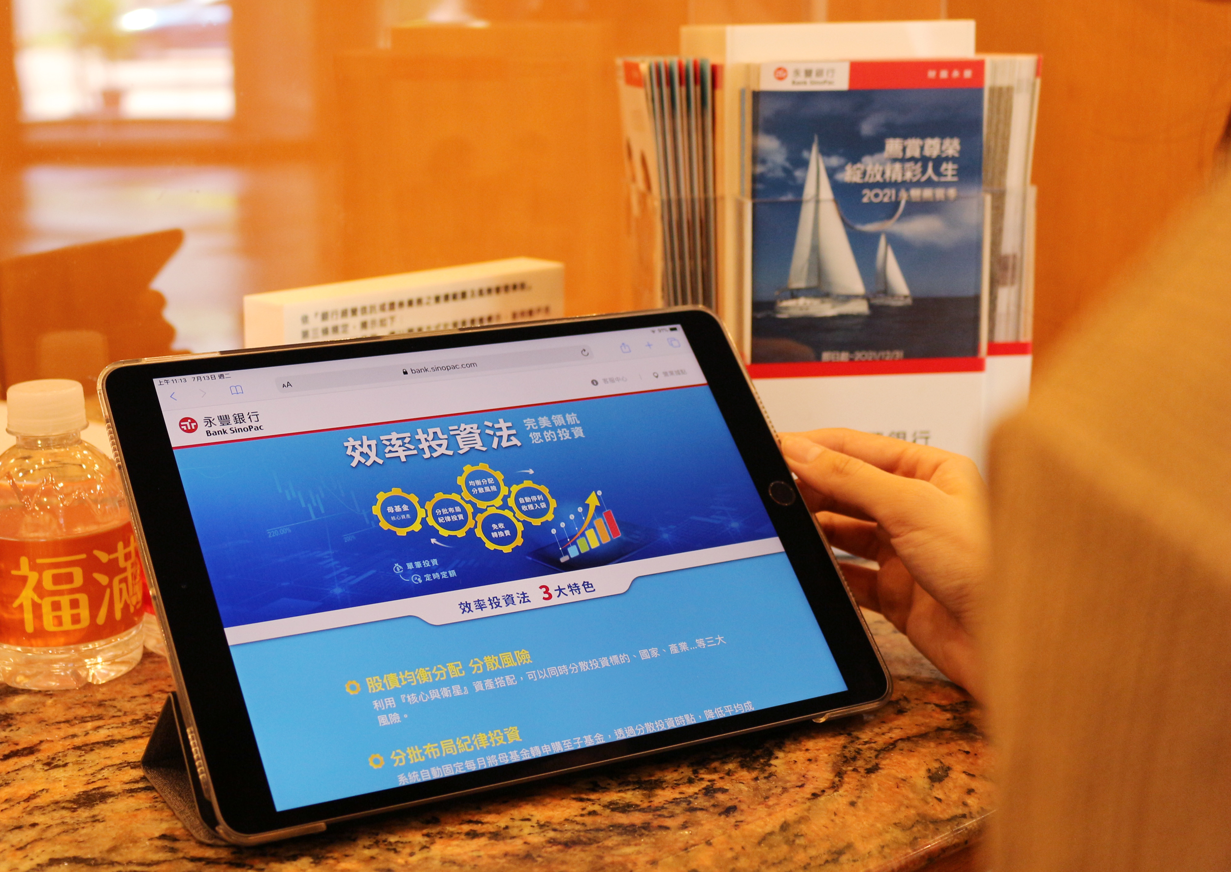 新聞圖說:永豐銀行即日起推出「效率投資法」速配理財功能,客戶免跑分行、一鍵管理資產。