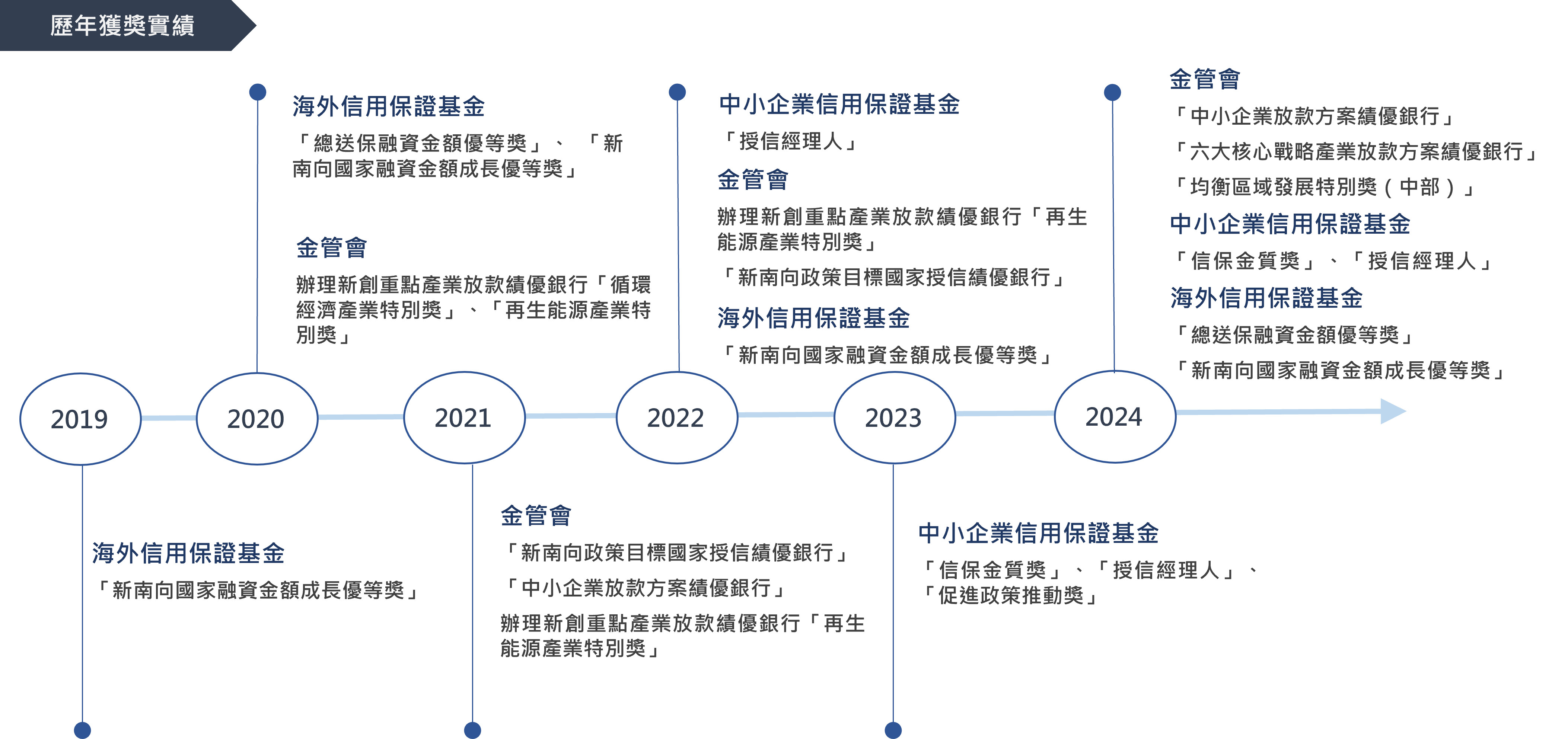 -2018年以「創新生態金融服務-新型態農產數位交易」榮獲第九屆臺灣傑出金融業務菁業獎-「最佳數位金融獎」之特優肯定