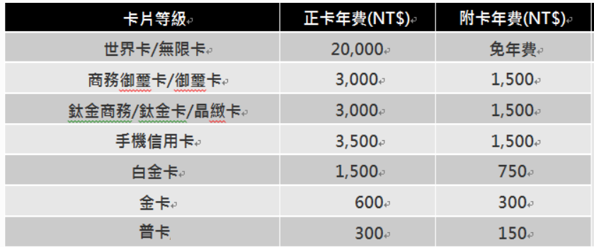 ※其餘等級卡片,年消費次數或消費金額擇一達成,即可減免次年年費。