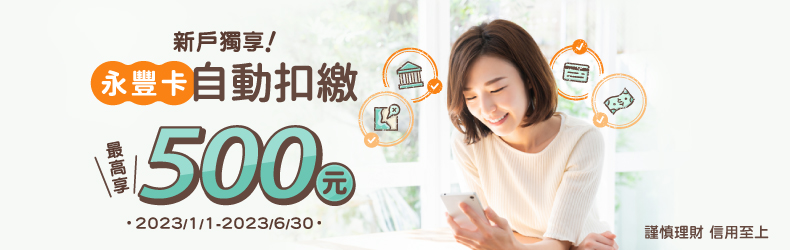 申請永豐帳戶扣繳本人永豐信用卡卡費,登錄享刷卡金回饋!