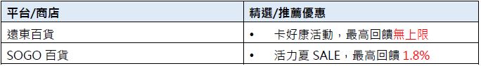 一、百貨購物,最高回饋19,000元