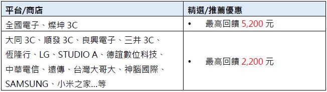 三、3C家電/電信通訊,最高回饋23,000元