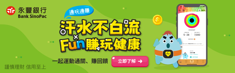 3. 本活動以運動健康推廣為出發點,如因不當方式獲取得獎資格者,並經檢視發現屬實後,本行有權逕行註銷該得獎資格。活動如發生任何爭議,概以永豐銀行針對爭議事實分析後做出之決定為準。