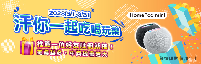 【活動二】每位中獎人獲888元刷卡金,共抽25名。