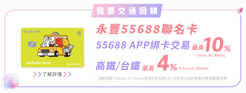 - 本活動為額外加碼,卡片原始權益將依各卡片網頁公告為準。