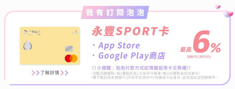 - 永豐DAWAY卡、八通卡、公司卡、配銷卡、承銷卡、Debit卡不適用本活動。