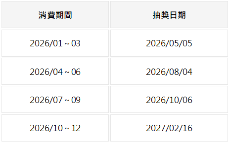- 活動期間:第一季2026/01/01~2026/03/31;第二季2026/04/01~2026/06/30